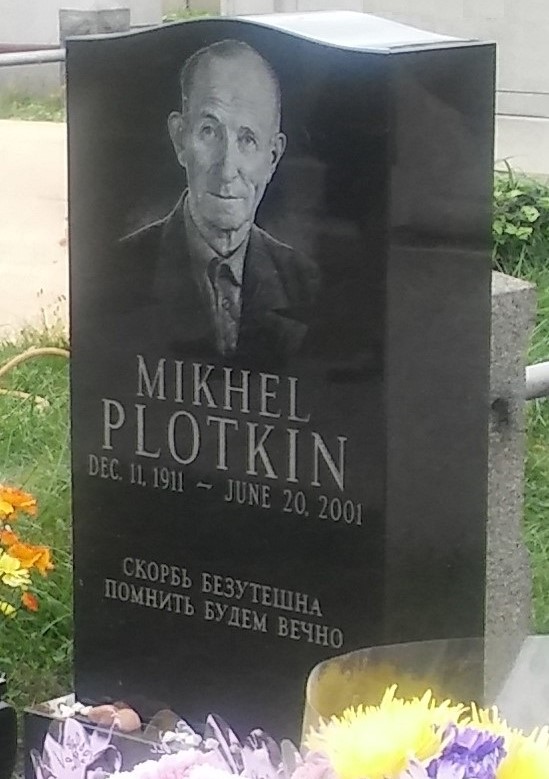 Михаил Плоткин родился в семье Мордехая и Ханы Симы. В семье было 10 детей - Шолом, Лейб, Сара, Евсей, Михаил, Борис, Броня, Моисей, Зельда и Авраам. Хана Сима скончалась до войны, Шолом умер во время войны в г. Шымкент, Мордехай и Лейб были убиты во время немецкой оккупации Белоруссии, Борис, Моисей, Авраам погибли на фронте, Евсей, Михаил и Зельда - ветераны войны. Сара, Броня, Зельда и Авраам успели эвакуироваться из Бобруйска. Авраам ушел добровольцем на фронт в г. Энгельс. |
