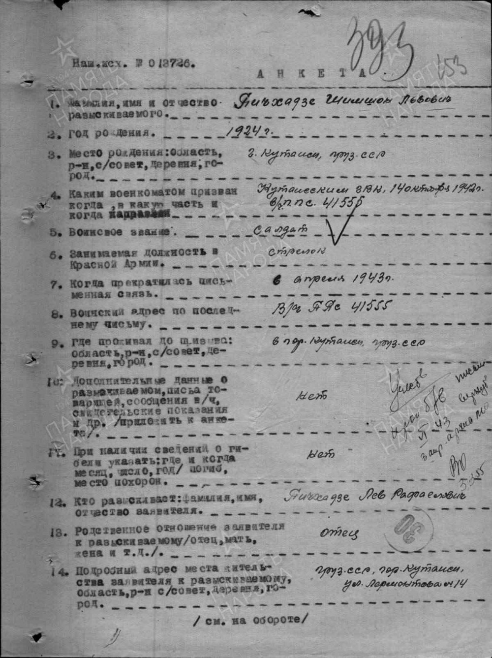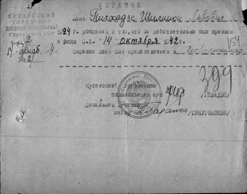 | Информация из онлайн-архивов ПИЧХАДЗЕ Шимшон Львович