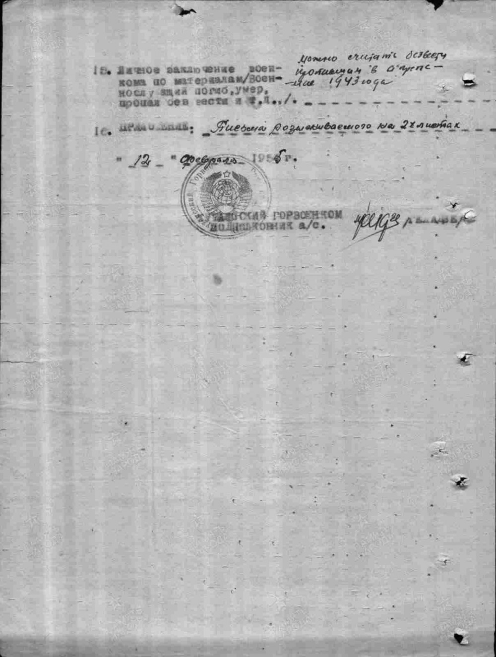 | Комментарий к обстоятельствам гибели Пропал без вести в апреле-мае 1943 г. | |