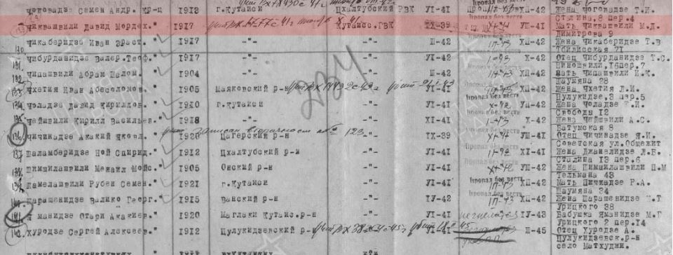 | Информация из онлайн-архивов Чиквашвили Давид Мордех.