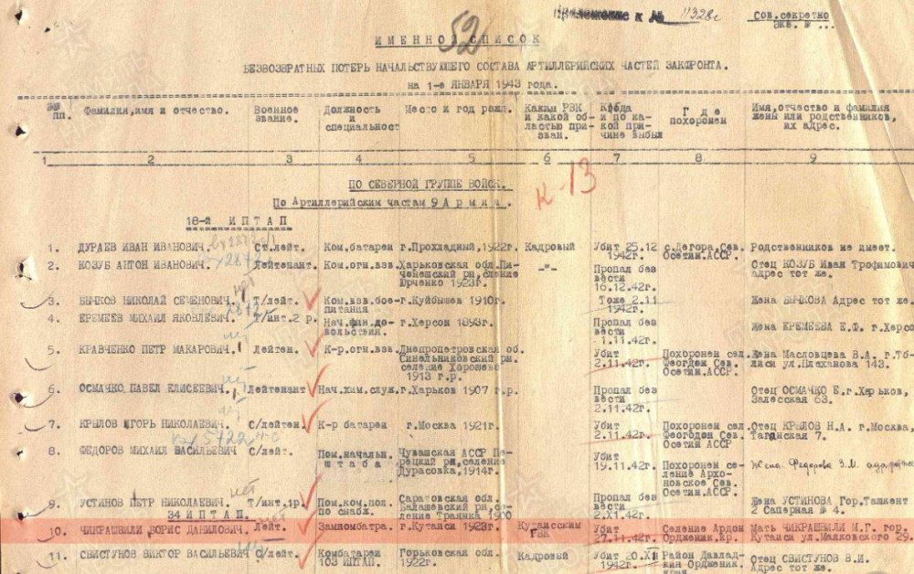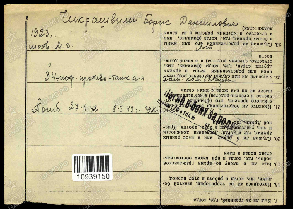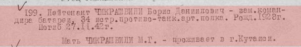 | Информация из онлайн-архивов Чикрашвили Борис Данилович