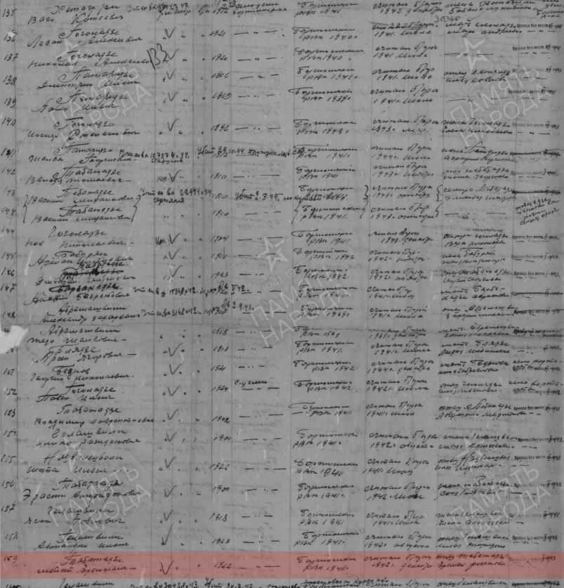 Информация из онлайн-архивов Табатадзе Моисей Еремеевич