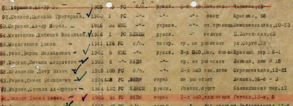 Информация из онлайн-архивов Зилист Давыд Исаакович