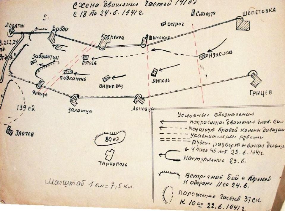Схема движения частей 141 стр. дивизии, июнь 1941