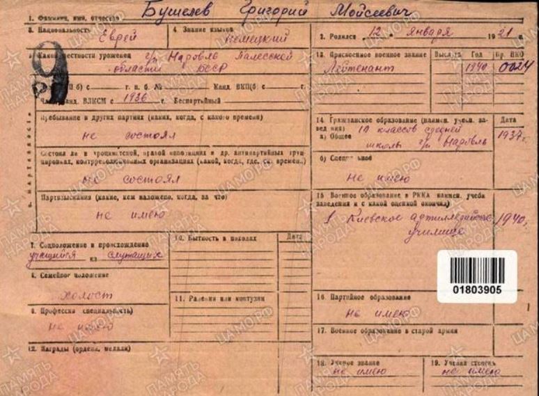 Информация из онлайн-архивов Бушелев Григорий Моисеевич