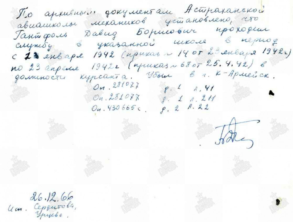Информация из онлайн-архивов 2996. ГАНТФАЛЬ Давид Борисович,