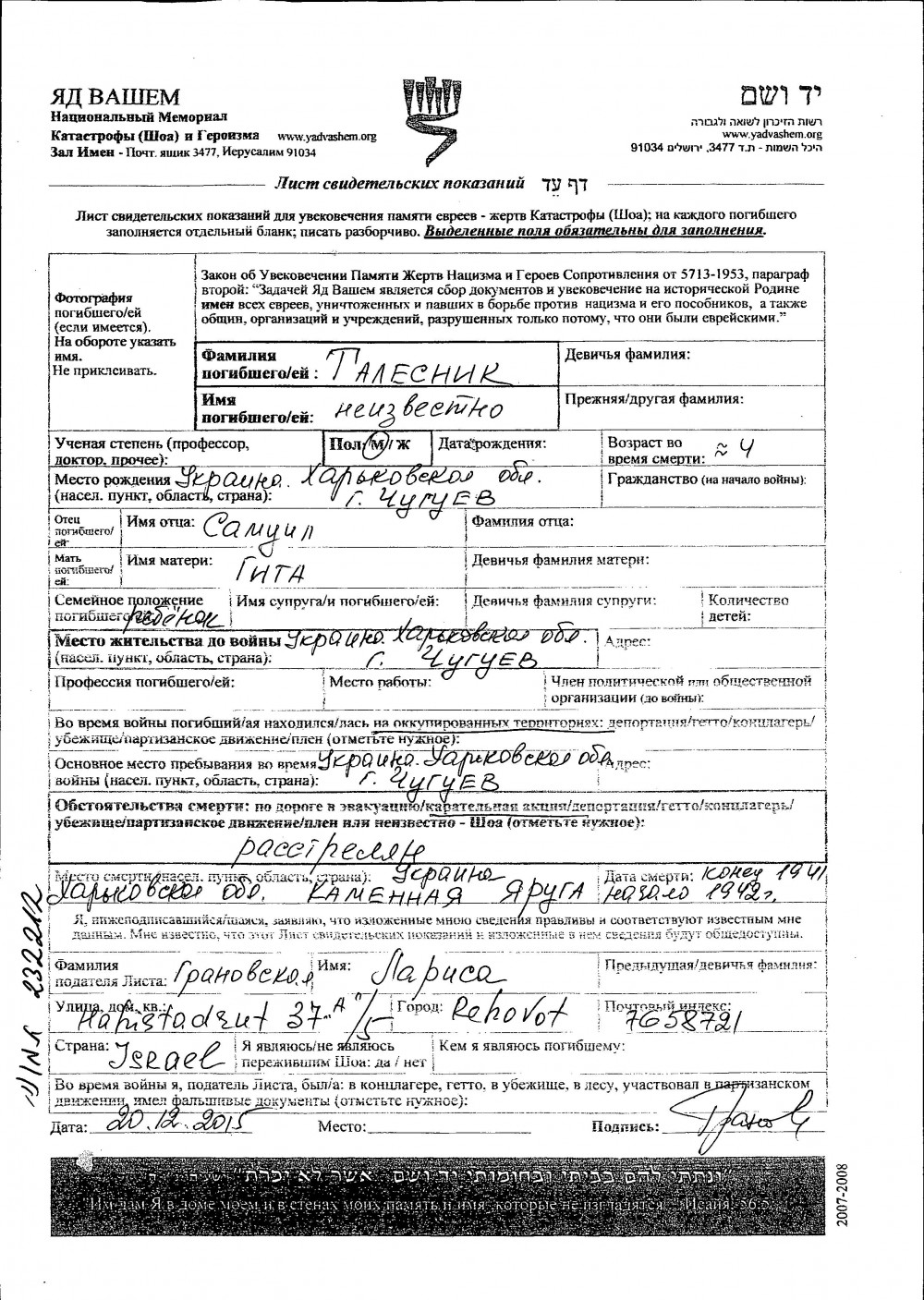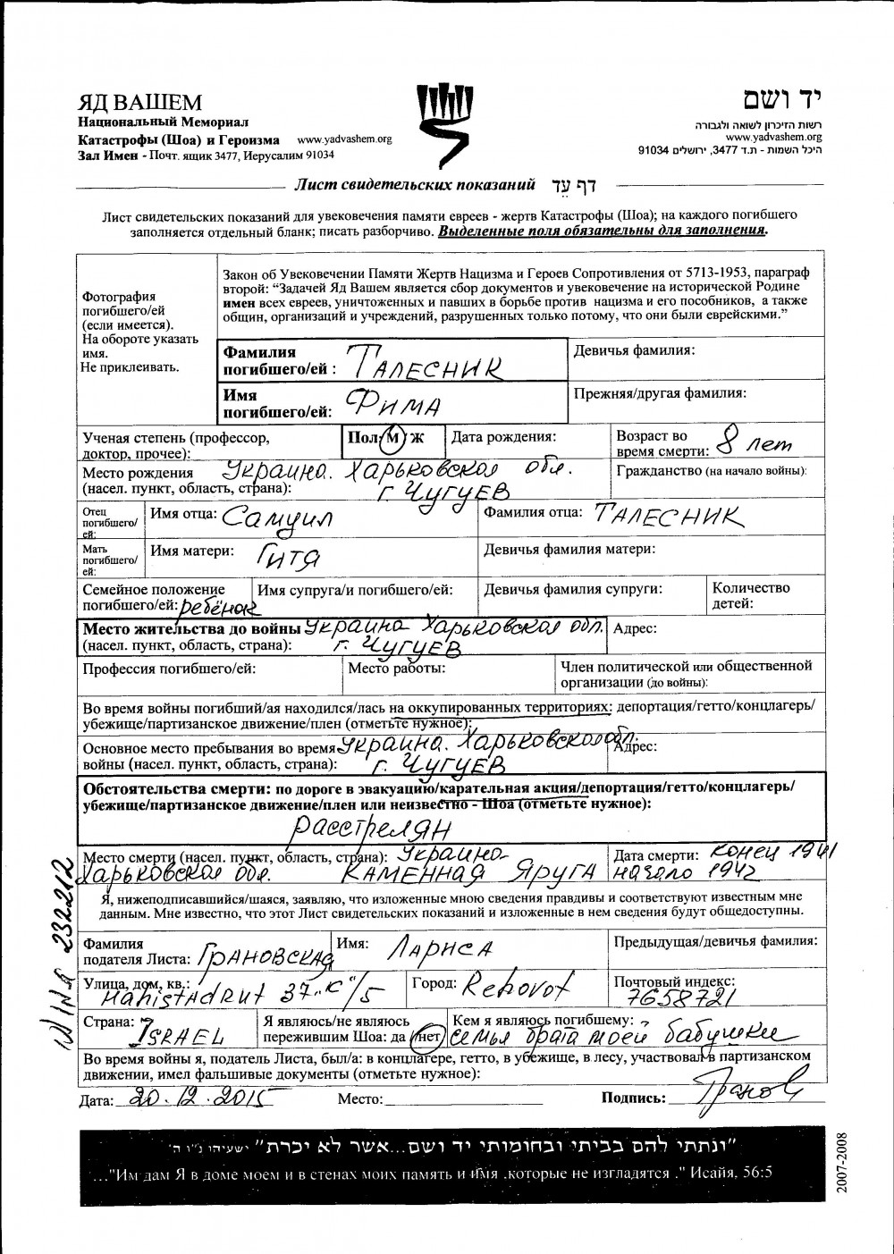 | Где проживают потомки семьи участника войны г. Реховот, Израиль |