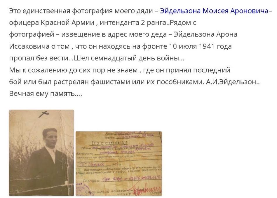 | Дополнительные сведения Эйдельзон Моисей Аронович.