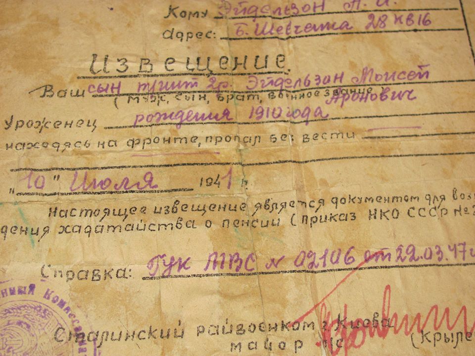 1910-1944. Урож.: г. Коростень, Житомирская обл., Украина. Призван 1941 Киевским ГВК, г. Киев. Рядовой, стрелок. Пропал без вести 06.1944. /ЦАМО, ф.58, оп. 18004, д.742/ | |
